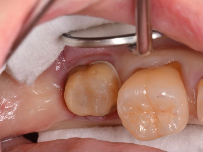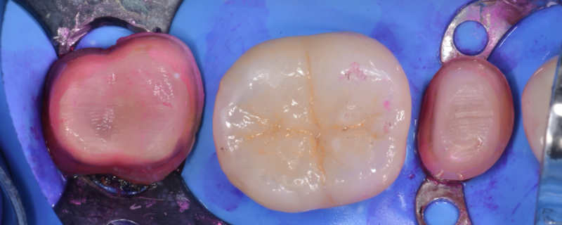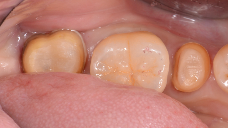 下の奥歯に被せ物を付けるときの写真です。