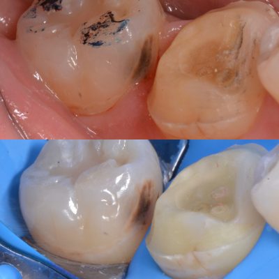 接着剤が理想とする、唾液のない湿度の低い環境で固まっているため、本来持っている機能をこれからも発揮し続けてくれるはずです。